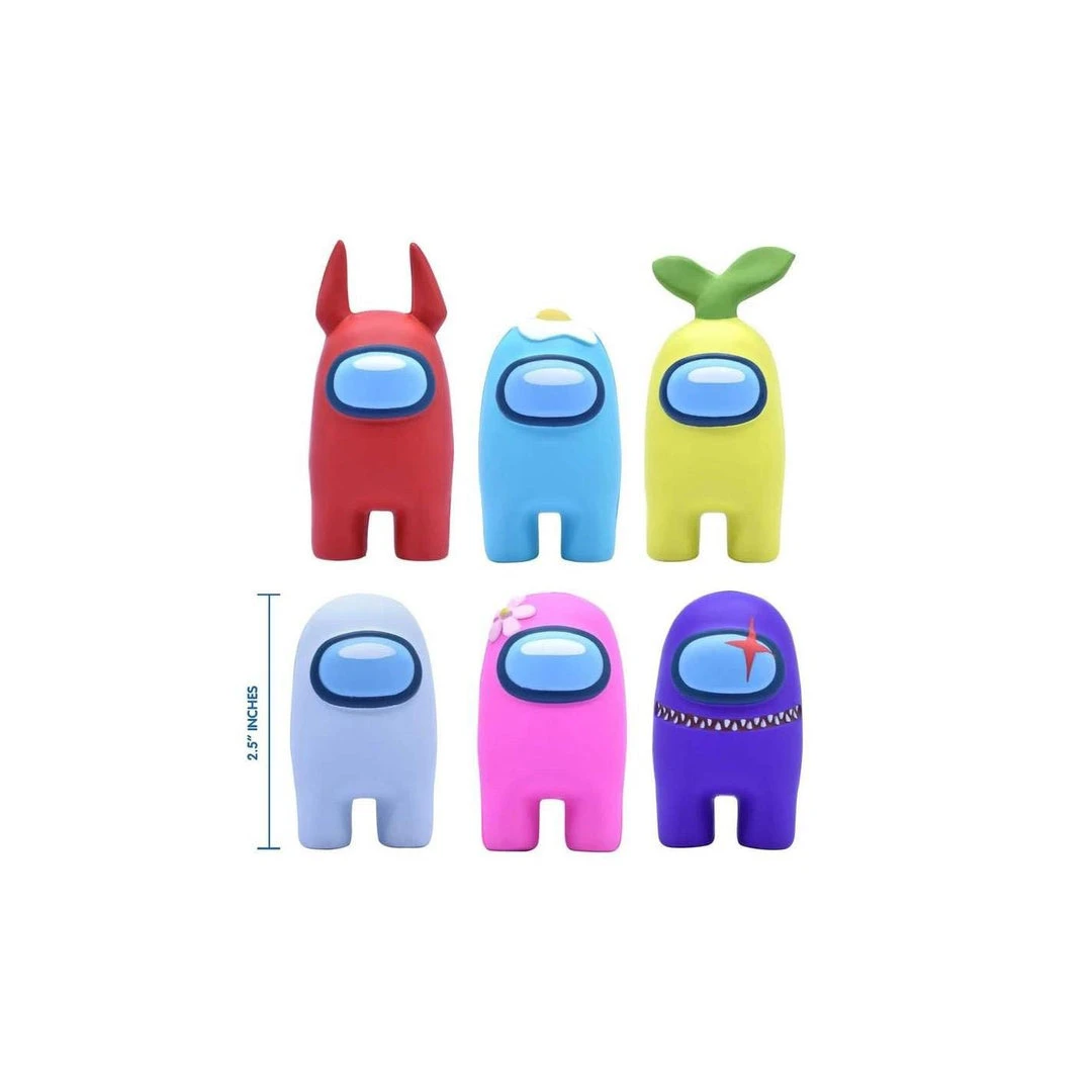 Officially licensed Among Us SquishMe. • Collect all 6 Among Us SquishMe characters, including a red, white, blue, purple, pink and yellow characters with different accessories. • Made from safe, high quality, extra soft polyurethane foam. • Includes one (1) random Among Us SquishMe toy. Each purchase comes blind and at random.