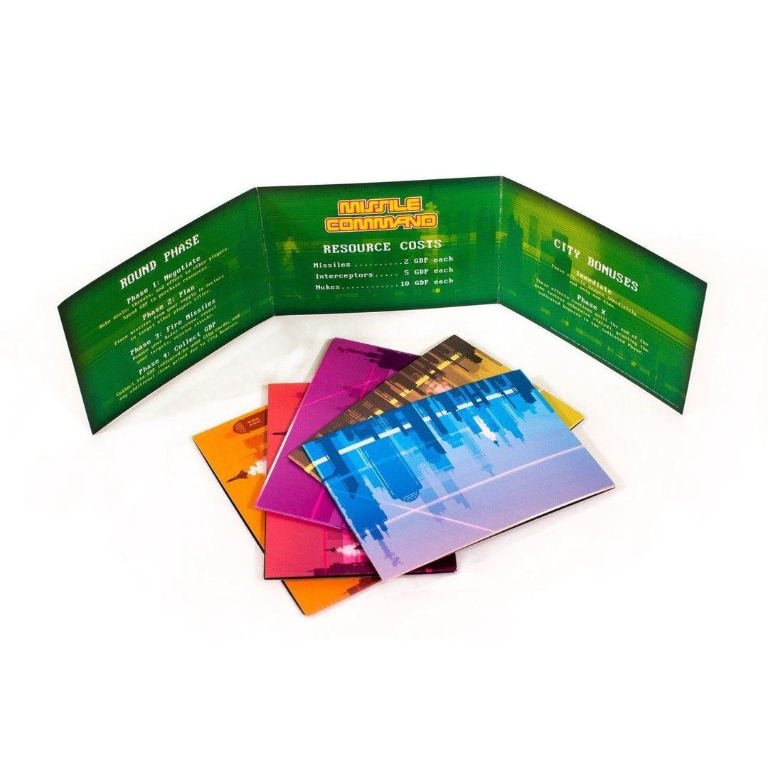 As global tensions mount, leaders of powerful nations sit ready to defend their people or destroy their enemies. Alliances are formed, yet fragile. Deals made, but not always upheld. Diplomacy is just as important as strategic planning and procuring armaments. The missiles are at your command and the choice if yours: fire on your enemies or betray your allies in Atari’s Missile Command. In Missile Command, 3 to 6 players venture into the world of the classic arcade game. Each player builds and deploys their supply of Missiles, Nukes and Interceptors on a mission to destroy as many enemy cities they can, while trying to protect their own. Each round, the players can negotiate with each other, forging temporary alliances and truces, or trading funds and Missiles. Then, they secretly plot their attacks behind their Radar Screens. Finally, they reveal their attacks, and destruction rains down from the skies! In the end, the player who can best protect their cities while destroying their opponents’ wins the game!