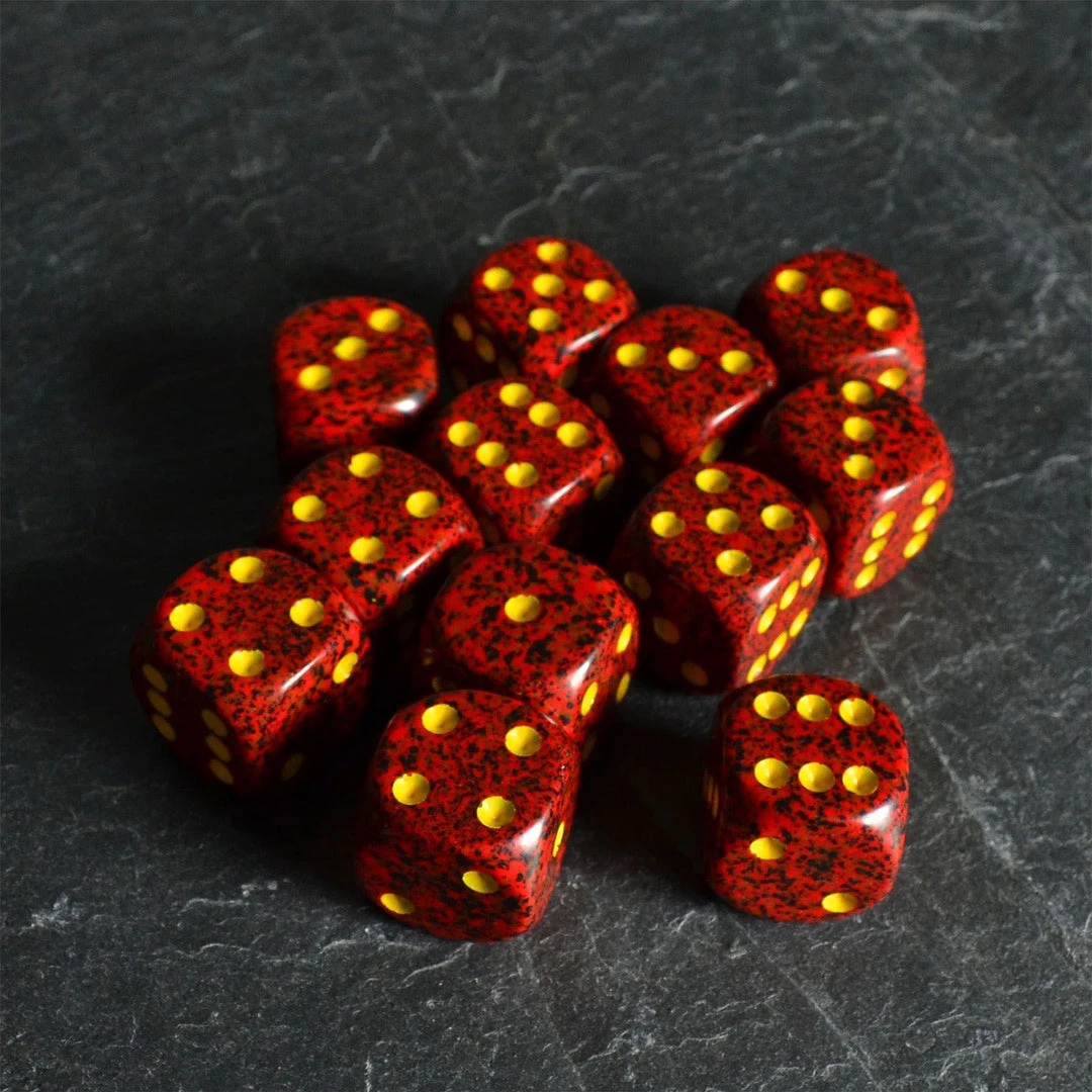 Set of 12 Speckled 16mm pipped D6 Dice in Mercury colour by Chessex.