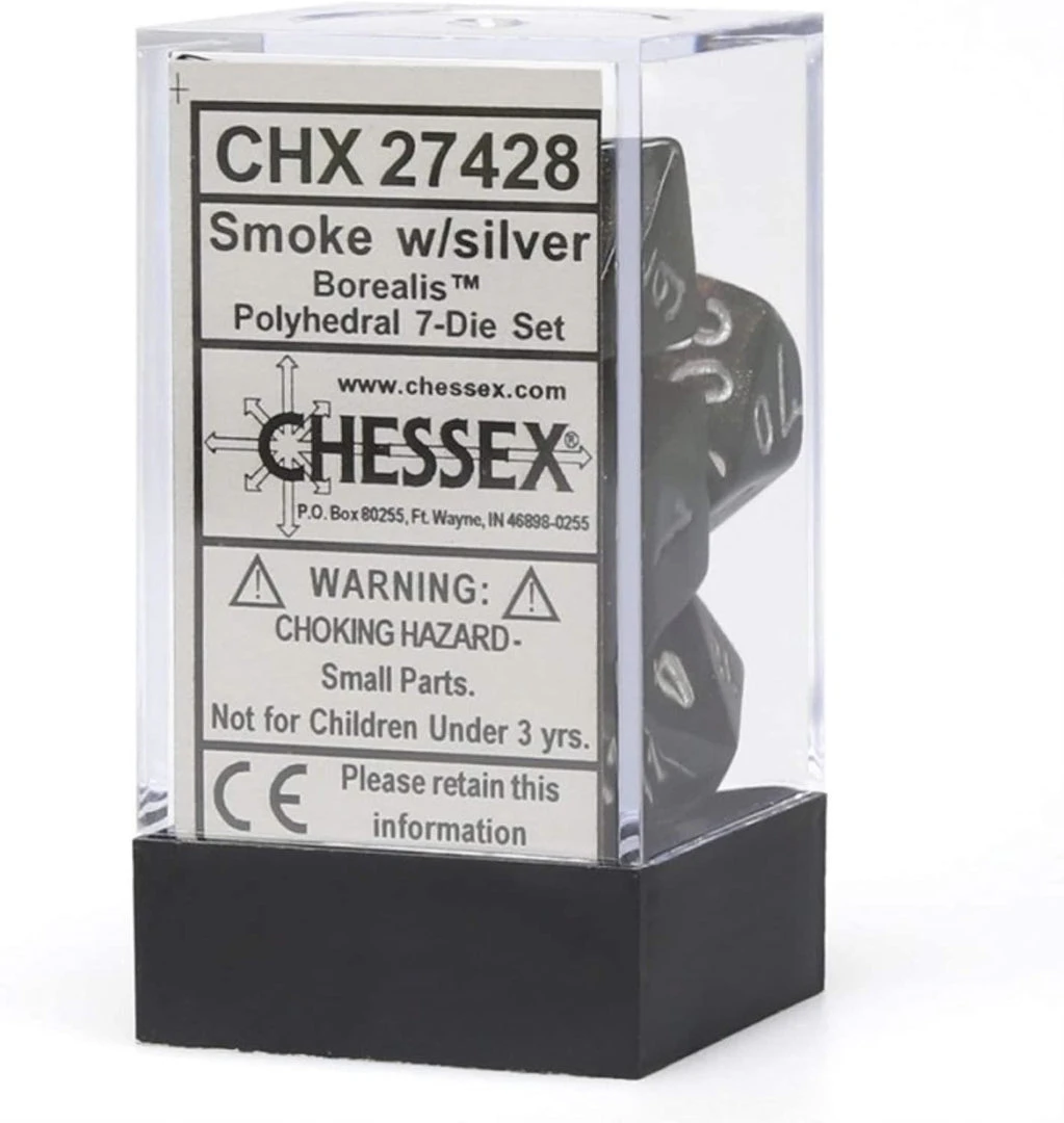 Chessex Borealis 7 Die Set Smoke with Silver