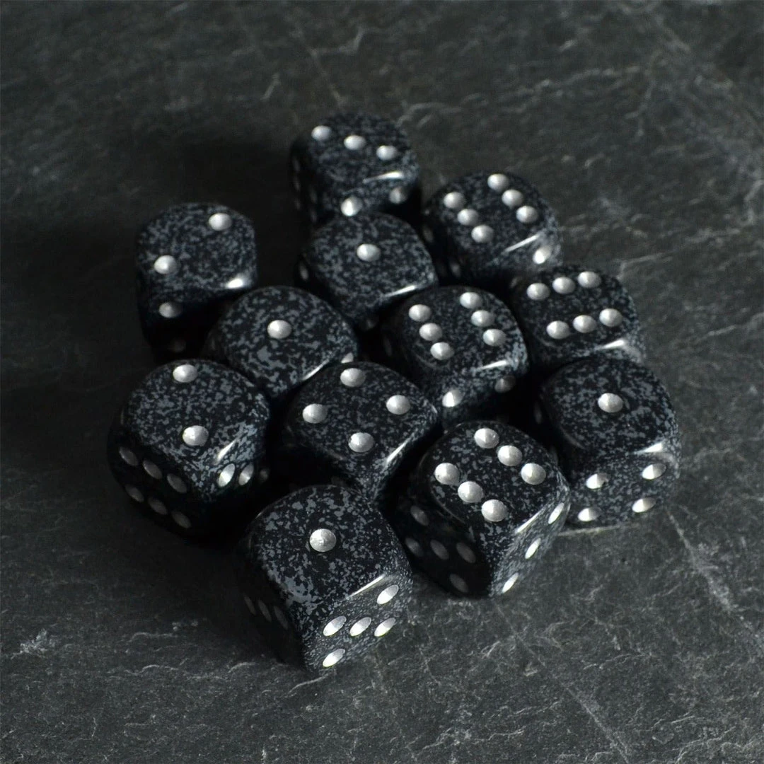 Set of 12 Speckled 16mm pipped D6 Dice in Ninja colour by Chessex.