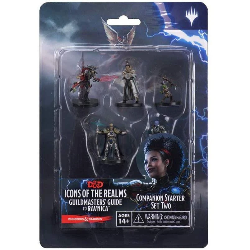 The D&D Icons of the Realms Guildmasters’ Guide to Ravnica Companion Starter Set Two contains five new heroes for your adventures, each representing one of the ten Ravnican Guilds. Players can combine this with the Guildmasters’ Guide to Ravnica Companion Starter Set One to own a miniature representing each of the ten Guilds. The most influential fantasy roleplaying game brings its newest setting to tabletop play with Guildmasters’ Guide to Ravnica Companion Starter Set Two!