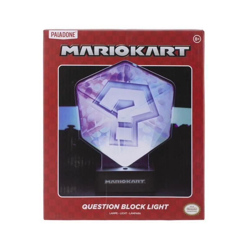 Light up your living space, bedroom or gaming room and have your favourite mystery block by your side with this 22cm (8.6″) tall Mario Kart Acrylic Question Block Light. This stylish display light is ideal for use on your desk, bedside table or shelves and is shaped to resemble the Item Box in its Mario Kart 8 form. The Mario Kart Acrylic Question Block Light will make an awesome addition to any Mario Kart fan’s home. The light can be powered by either USB (cable included) or 3x AA batteries (not included) so you can place it anywhere in your home. Keep your favourite Mario Kart mystery block by your side 22cm (8.6″) tall light Powered by USB (cable included) or 3x AA batteries (not included) Officially licensed Nintendo® product and great for Mario Kart fans