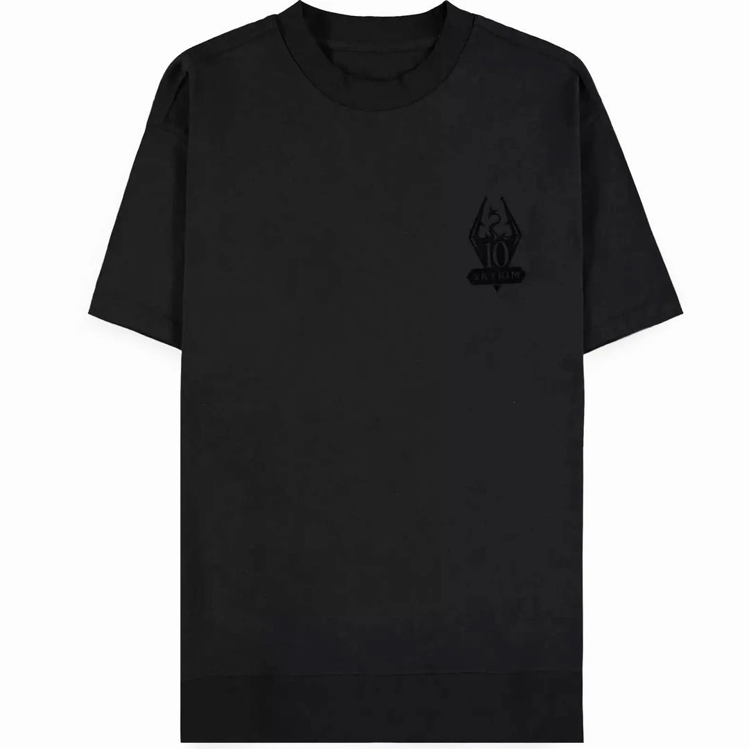 One of the things you must achieve to becoming Skyrim’s supreme champion is to wear this shirt! Equip yourself in our black men’s t-shirt with a metallic screen-printed anniversary graphic on the front.