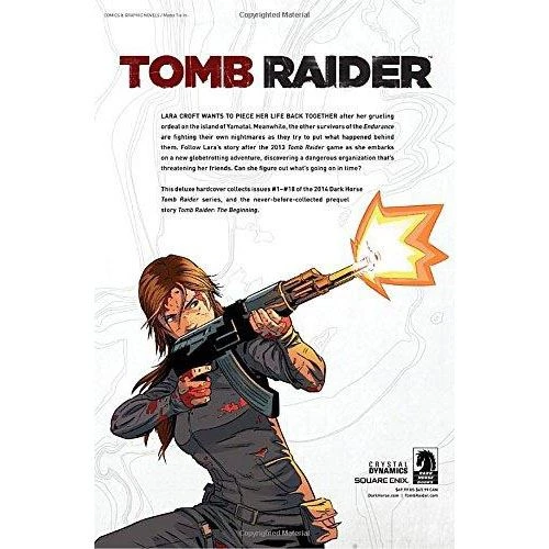 This deluxe hardcover collects issues #1-#18 of the 2014 Dark Horse Tomb Raider series, and the never-before-collected prequel story Tomb Raider: The Beginning. Lara Croft is trying to piece her ordinary life back together after her ordeal in the Lost Kingdom of Yamatai. The other survivors of the Endurance are experiencing horrific visions as they try to put what happened behind them. Follow Lara’s story after the 2013 Tomb Raider game as she embarks on a new globetrotting adventure, discovering a dangerous organization that’s threatening her friends. Can she figure out what’s going on in time to save a life?